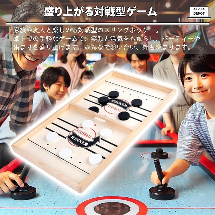 「盛り上がる対戦型ゲーム」家族や友人と楽しめる対戦型のスリングホッケー。