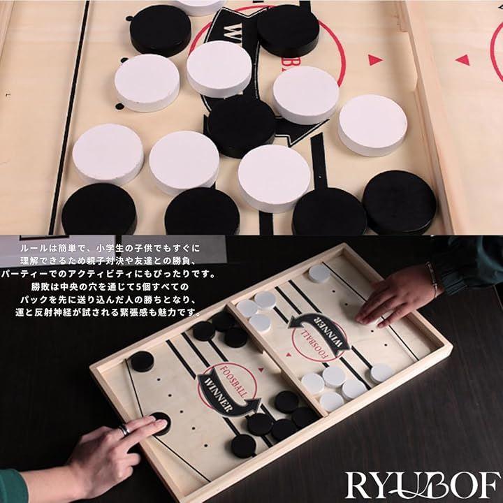 「白熱のスリングホッケー対戦」テーブルに広げるだけで準備完了、木製のスリングホッケーボードゲームは2人対戦形式で小学生から大人まで誰もが白熱のスピード勝負を楽しめます。