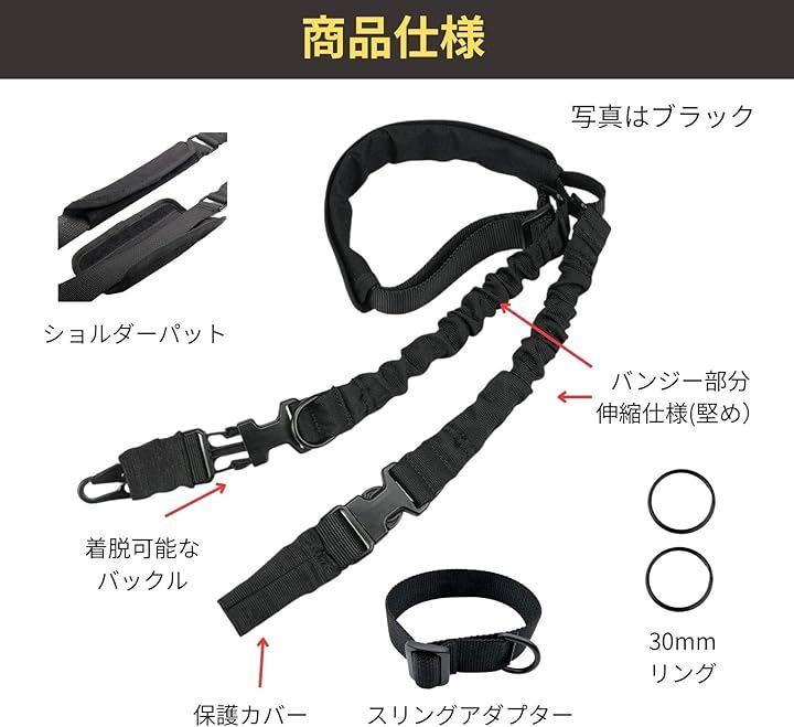 本製品はサバイバルゲームやエアガンの使用に欠かせないスリングで、ライフルや電動ガンを安定して携行できるよう設計されています。
