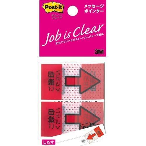 書類の処理・管理に役立つフィルムタイプがポストイットジョーブシリーズに新登場。貼るだけで伝わる!重要箇所をしっかり「しめす」メッセージポインターを使えばオフィスでの書類処理がもっと効率的に。【特長】・オフィスでの書類処理時に必須な4種のメッセージ入りだから書き込みの手間が省け、 大きく鮮やかな矢印がしっかり目立ち見落とさないから直接相手に渡せない時にも安心です。・また、丈夫なフィルム製だから繰り返し使えしっかり貼れて綺麗に剥がせるから、 直接書き込みが出来ない重要な書類にも使えます。