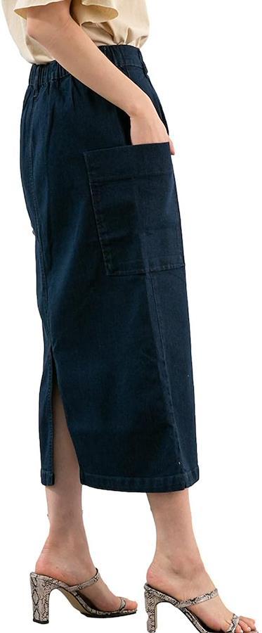 後ろ部分がゴム仕様なので着心地はリラックスなのにきれいめに使える、飽きの来ない膝下丈のスカートに仕上がっています。