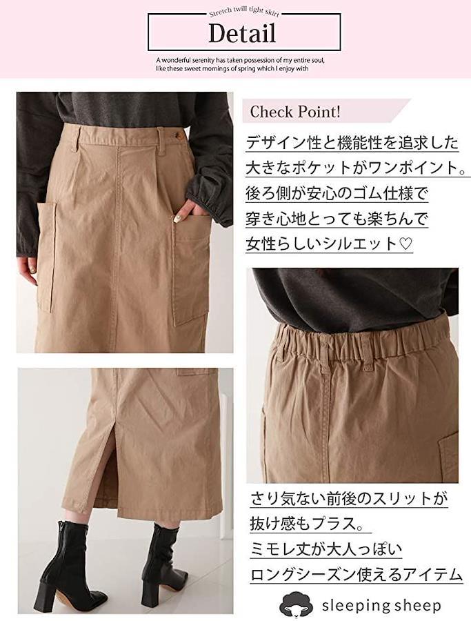 大人可愛い大きなポケット&前後スリット入りコットンストレッチツイルタイトスカート