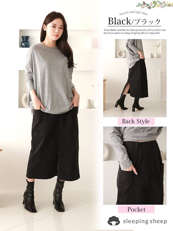 *カラー:ベージュ・カーキ・ブラック *サイズ [Mサイズ]ウエスト:62cm、ヒップ幅:96cm、総丈:80cm、裾幅:96cm [Lサイズ]ウエスト:66cm、ヒップ幅:100cm、総丈:80cm、裾幅:100cm [LLサイズ]ウエスト:72cm、ヒップ幅:106cm、総丈:80cm、裾幅:106cm [3Lサイズ]ウエスト:78cm、ヒップ幅:112cm、総丈:80cm、裾幅:112cm [4Lサイズ]ウエスト86cm、ヒップ幅:118cm、総丈:80cm、裾幅:120cm 「素材」コットン98%、ポリウレタン2% 「裏地」なし 「透け感」なし 「伸縮性」あり 「生地の厚さ」やや薄い 「原産国」バングラデシュ
