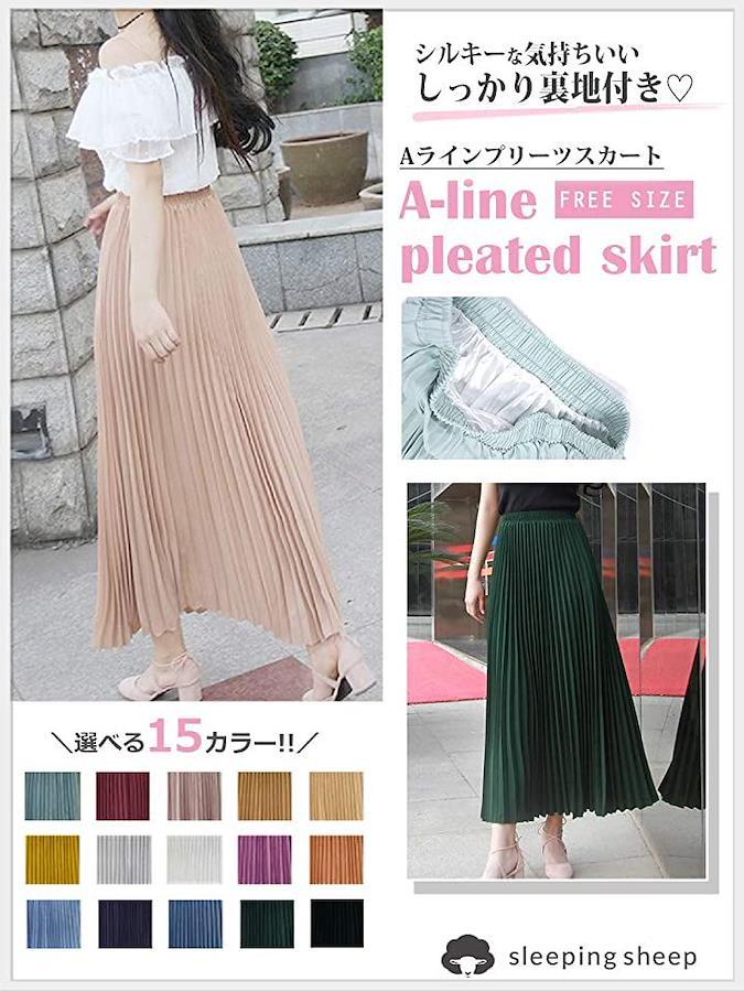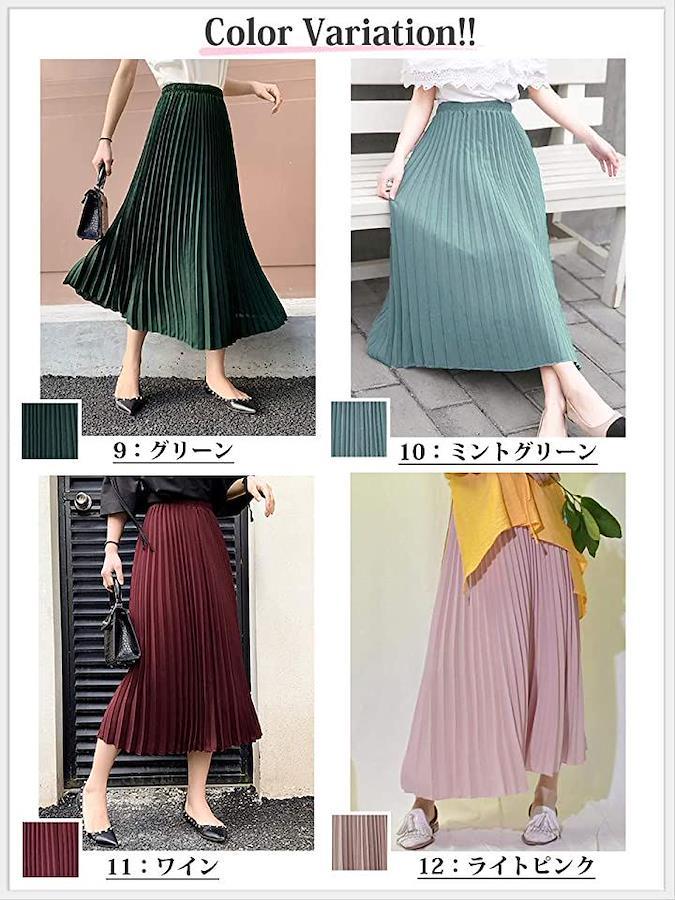 歩くたびに揺れる細めのプリーツが女性らしさを演出してくれます。