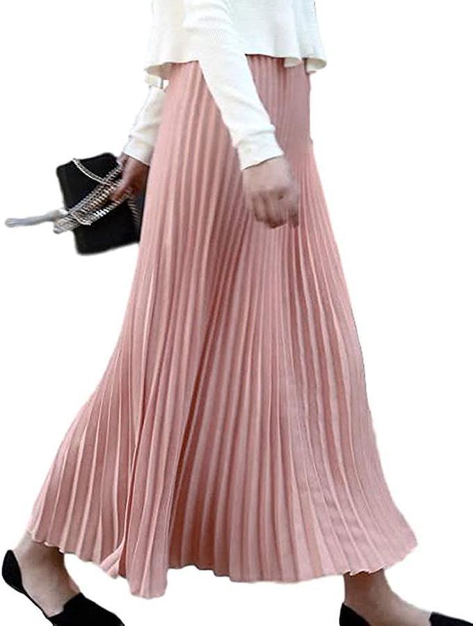 歩くたびに揺れる細めのプリーツが女性らしさを演出してくれます。
