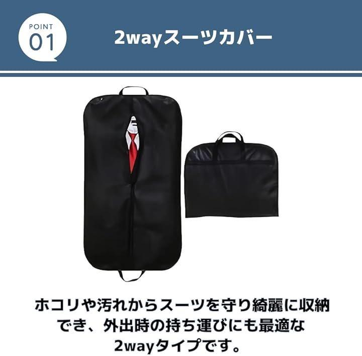 ホコリや汚れからスーツを守り綺麗に収納でき、外出時の持ち運びにも最適な2wayタイプです。