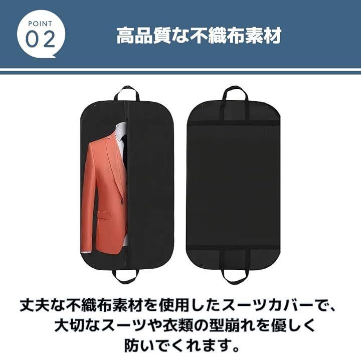 「高品質な不織布素材」丈夫な不織布素材を使用したスーツカバーで、大切なスーツや衣類の型崩れを優しく防いでくれます。