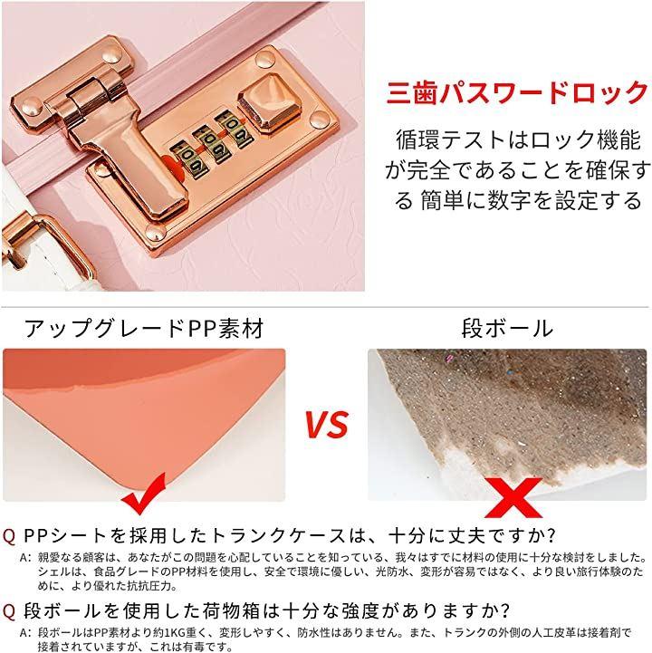 最新の高品質素材を採用: スーツケース本体は、人工皮革とPP素材が熱で結合されており、軽量で耐久性があります。