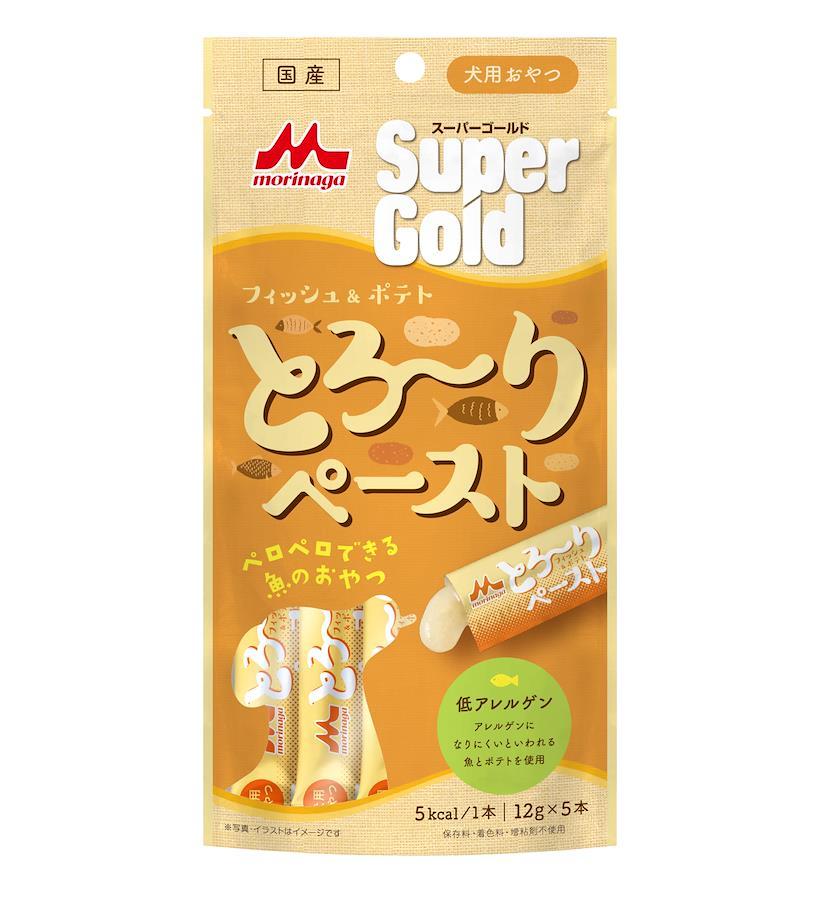 ・主原料にアレルゲンになりにくいといわれる魚とポテトを使用したとろーりなめらかなペーストタイプのおやつです。