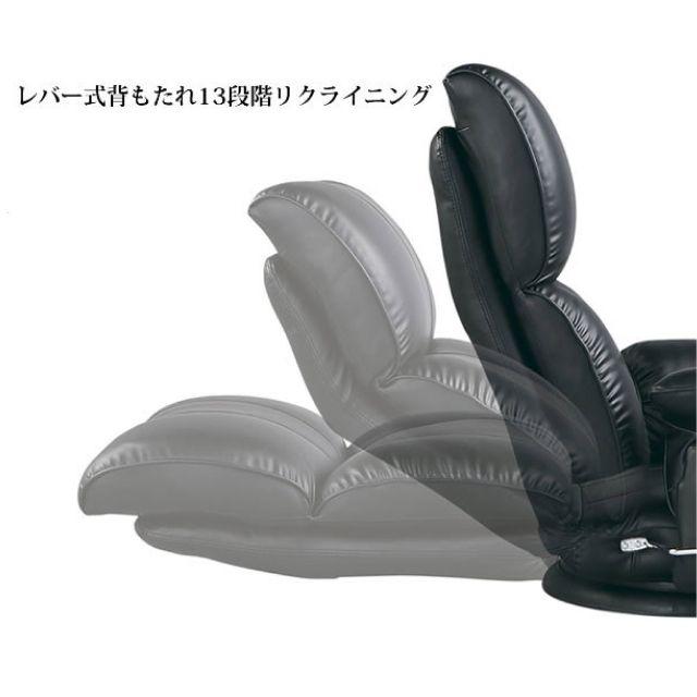 ◎柔らかな肌触りと、手入れのしやすさが特徴のスーパーソフトレザー製座椅子です。◎座面はもちろん、背もたれやヘッド部分、肘部にもウレタンを用いて快適な座り心地です。◎背もたれはレバー式13段階リクライニング。◎ヘッド部は5段階リクライニング可能ですので、背もたれを倒してのTV鑑賞等に役立ちます。◎左側面には、リモコンや小物を入れるのに便利なポケット付。◎回転盤付きで、360度回転可能です。
