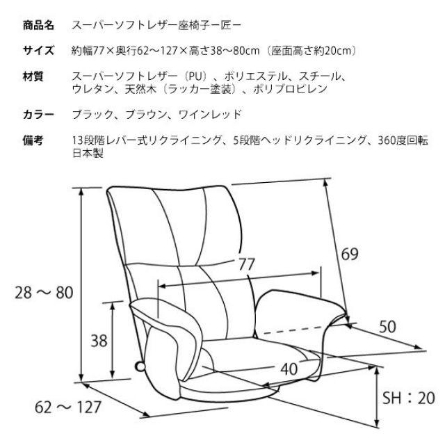 スーパーソフトレザー座椅子−匠−3色〈ブラウン/ブラック/ワインレッド〉