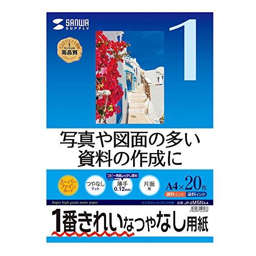 〔インクジェットプリンタ:つやなしマット紙(片面印刷用・スーパーファイン・薄手)〕/際立つ白さで、鮮明でクリアな画像を表現するマットタイプのインクジェット用紙/(A4サイズ・20枚)//■つやなしマット紙の中では最高グレードの用紙です。/■白色度が非常に高く、鮮明でクリアな画像を再現します。/■高発色マット層により、画像濃度が高く、鮮明な発色が得られます。/■写真画像入りの特別な会議やプレゼン資料の印刷に最適です。