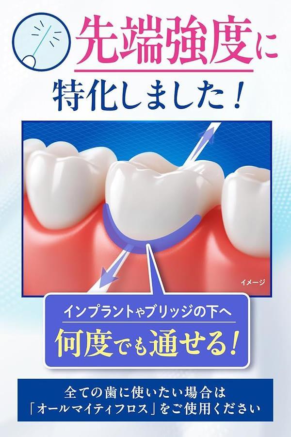 さらに、何度も通せる強化素材と、プラークをごっそりからめとる特殊加工繊維で、ブリッジ下の清掃がスムーズかつ効果的に。