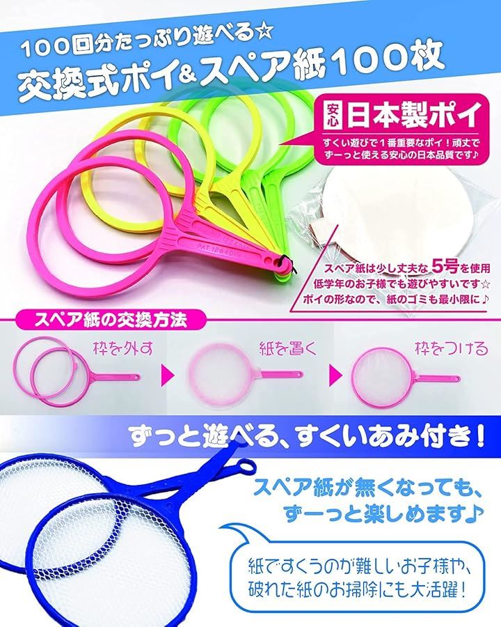 日本製ポイは日本の玩具メーカーが製造している頑丈なはめ込みタイプですので、何度も繰り返しすくい遊びをお楽しみ頂けます。