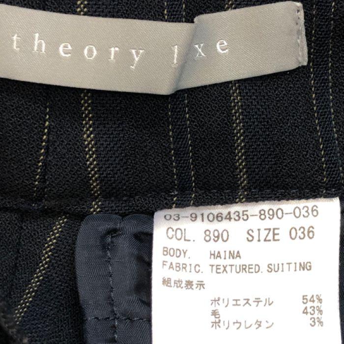 【管理番号】 014801s【ブランド名】 Theory luxeセオリーリュクス【商品名】【アイテム】 パンツ【型番】【サイズ】 36(7号/S相当) 平置採寸(ウエスト:約32.5cm総丈:約94cm 股上:約24.5cm 股下:約70.5cm・わたり幅:約26cm・裾幅:約25cm)【色・柄】 ネイビー ストライプ柄【素材】 ポリエステル54%毛43%ポリウレタン3%【付属品】【外観ランク】ABランク