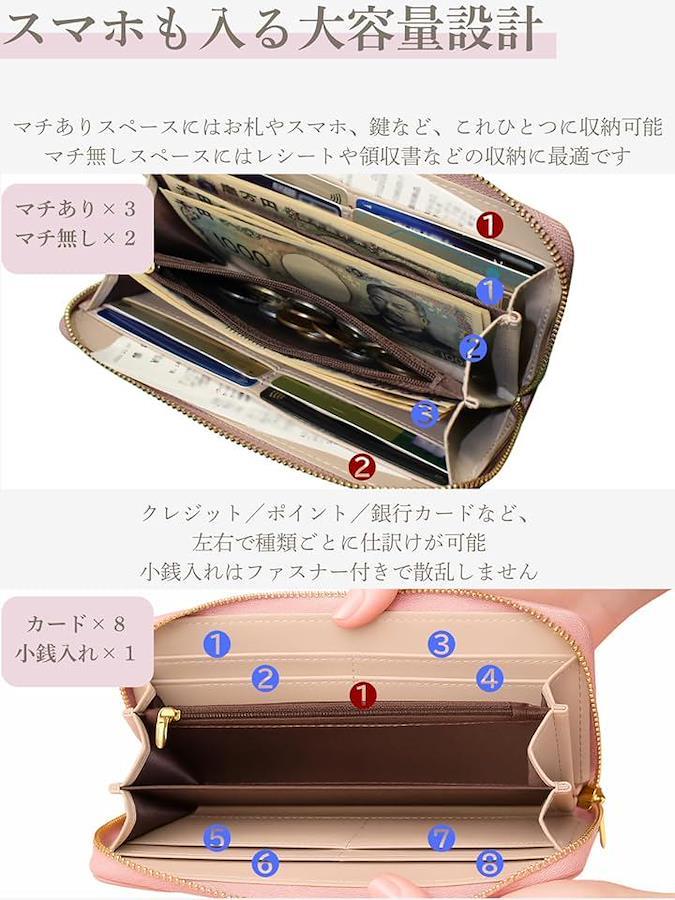 「スマホも入る。多機能・大容量設計」札入れは驚きの5か所設計。