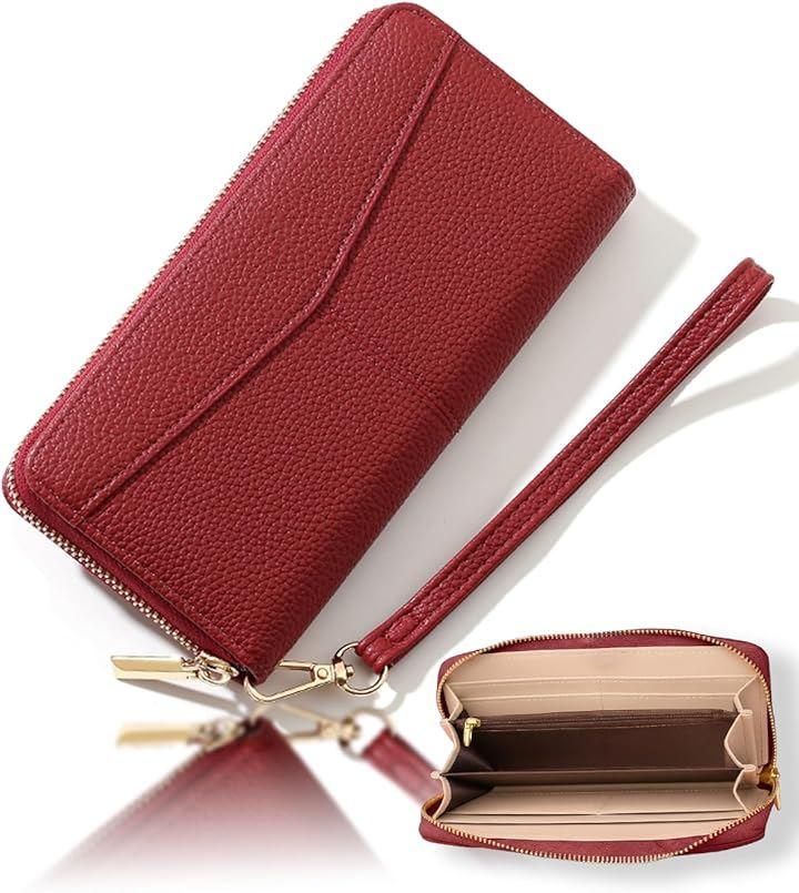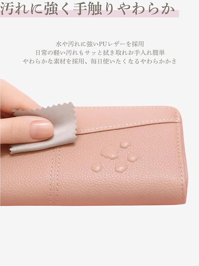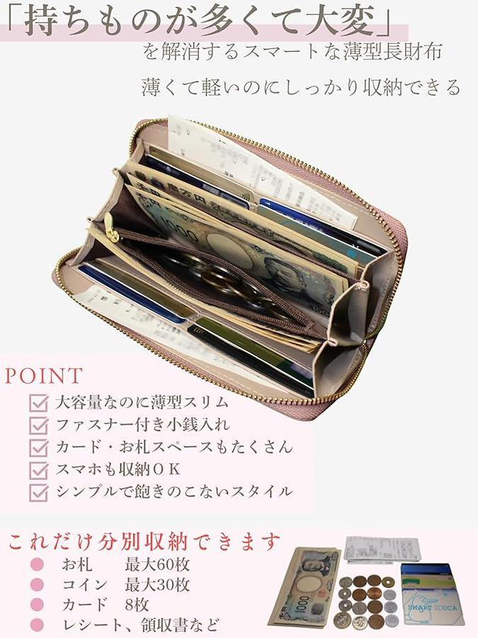 「商品仕様」サイズ:約19.3cmx9.8cmx3.0cm 重さ:約153g 素材:PUレザー カラー展開:全6色 カードポケットx8、小銭入れx1、お札入れx5《スマホも収納可能な長財布》