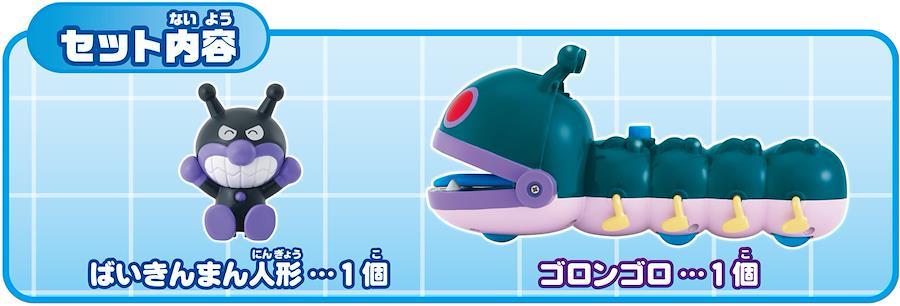 3営業日以内に発送≪新品未開封品≫お子様に大人気のバイキンメカシリーズより「ゴロンゴロ」が登場!劇中でおなじみの、おもしろい見た目と、長いベロを持つ「ゴロンゴロ」①手で転がすと口がぱくぱく動く!②ボタンを押すと長いベロがカシャっと飛び出す!③付属のばいきんまん人形を頭に乗せられる!シリーズで集めると、さらに人形遊びが盛り上がります![セット内容]ゴロンゴロ本体、ばいきんまん人形