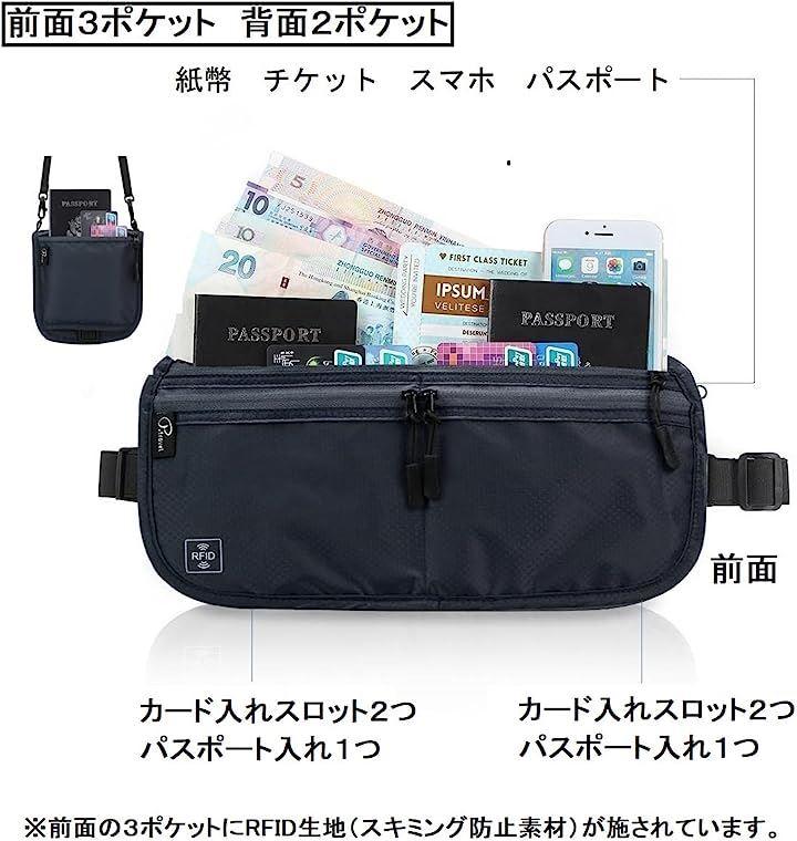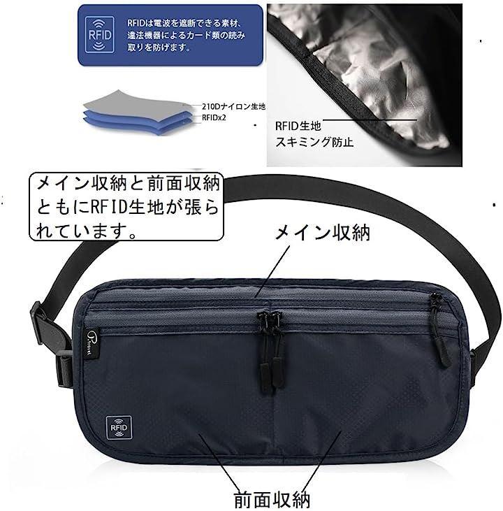(1)前面の3ポケットにはRFIDブロッキング素材を採用していますので、パスポート、クレジットカード、交通系ICカード類などに。