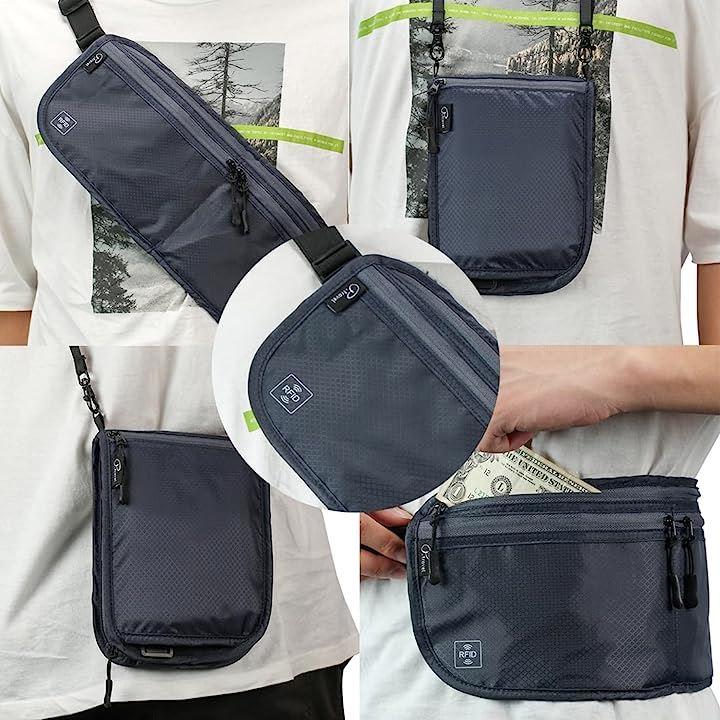 ・「前面3ポケット・灰面2ポケット搭載」このセキュリティバッグは薄型、軽量のデザインですが、前面3ポケット・背面2ポケットの計5ポケット搭載していますので収納力抜群で、小分けしやすく、必要なモノもサッと取り出しやすい作りになっています。