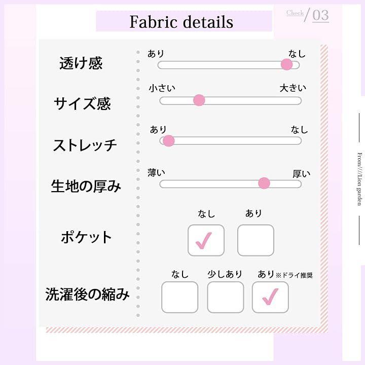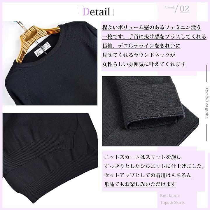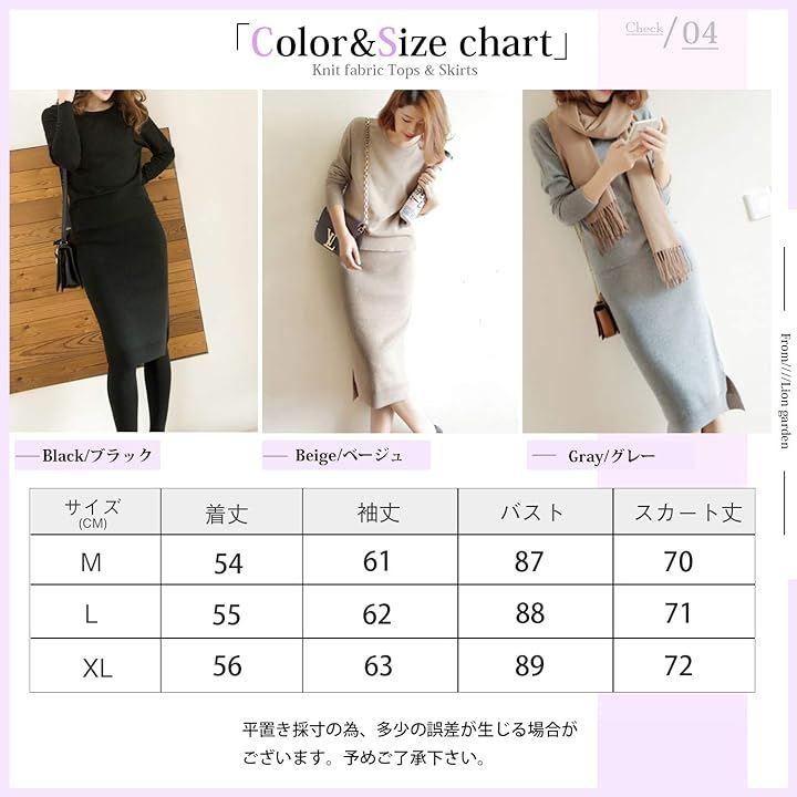 サイズ:着丈(トップス)/袖丈/バスト/スカート丈「M」54cm/61cm/87cm/70cm 「L」55cm/62cm/88cm/71cm 「XL」56cm/63cm/89cm/72cm
