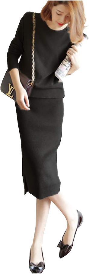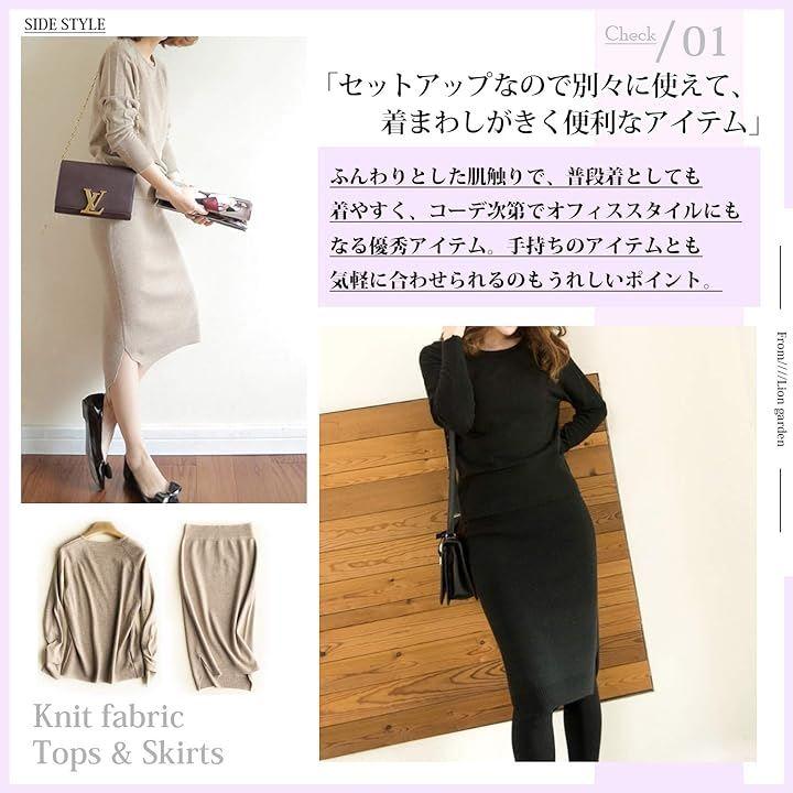 ボトムスのニットスカートは何にも相性抜群で、手持ちのアイテムとも気軽に合わせられるのもうれしいポイント。