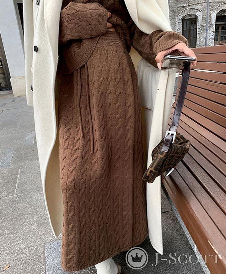 「エレガントなリラクシーが楽に叶う、ニットセットアップ」 ふんわりと暖かく、季節感漂うリラックスムードを演出してくれるニットセットアップ。