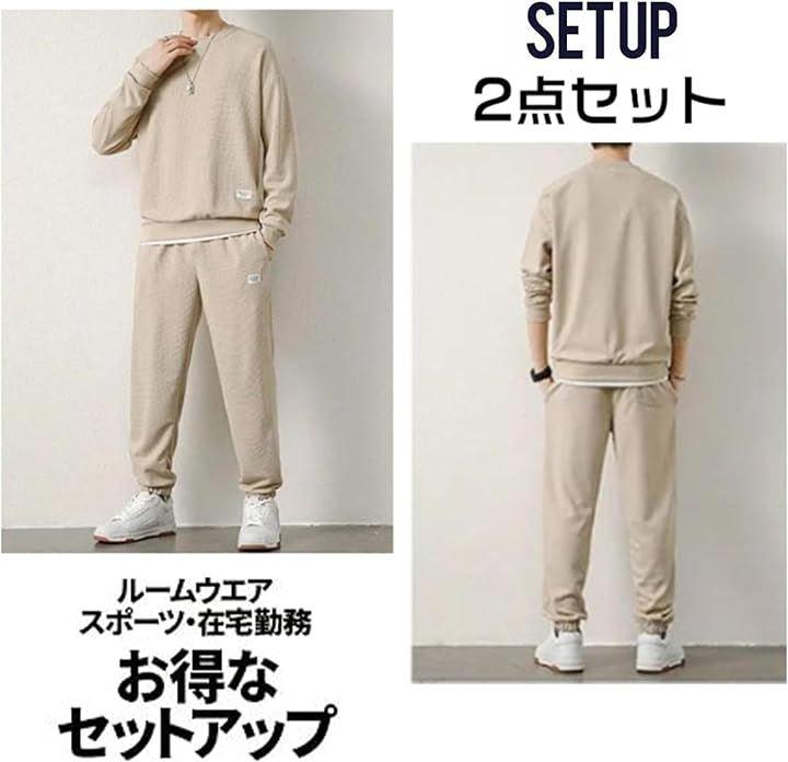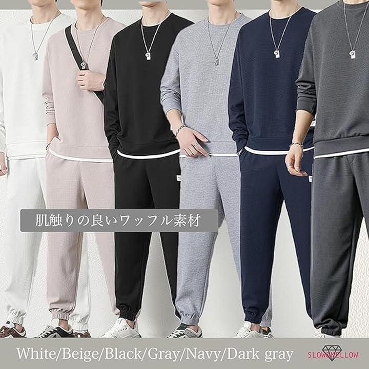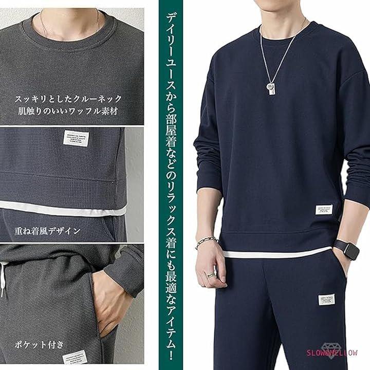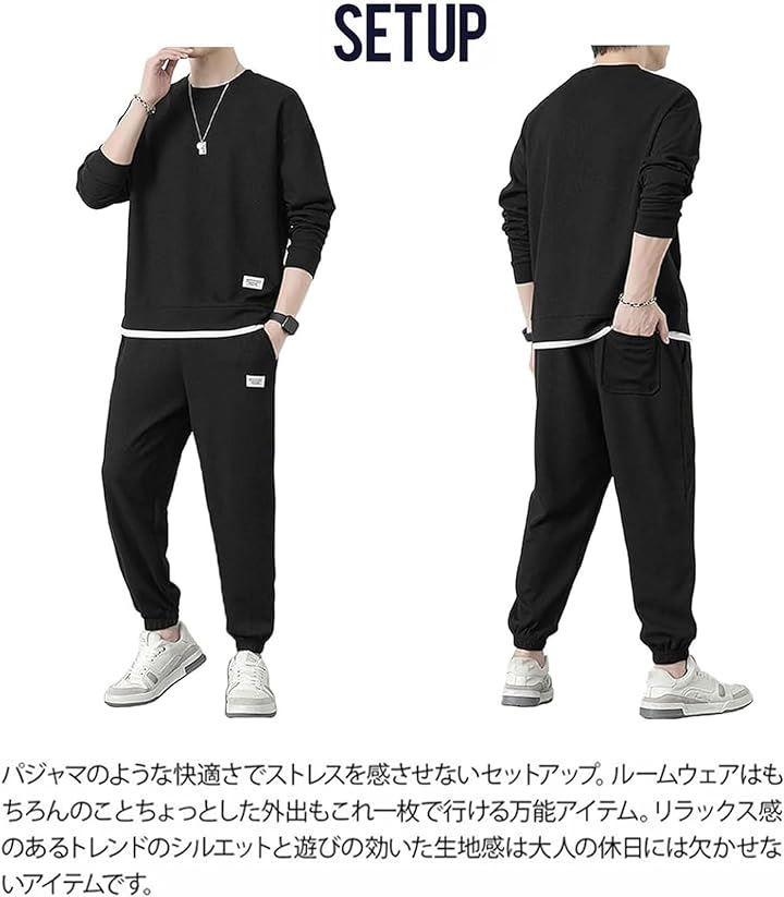 トップスはスッキリとしたクルーネックデザイン。パンツはウエストゴムとドローコード仕様。スマホやお財布も入る便利なポケット付き。
