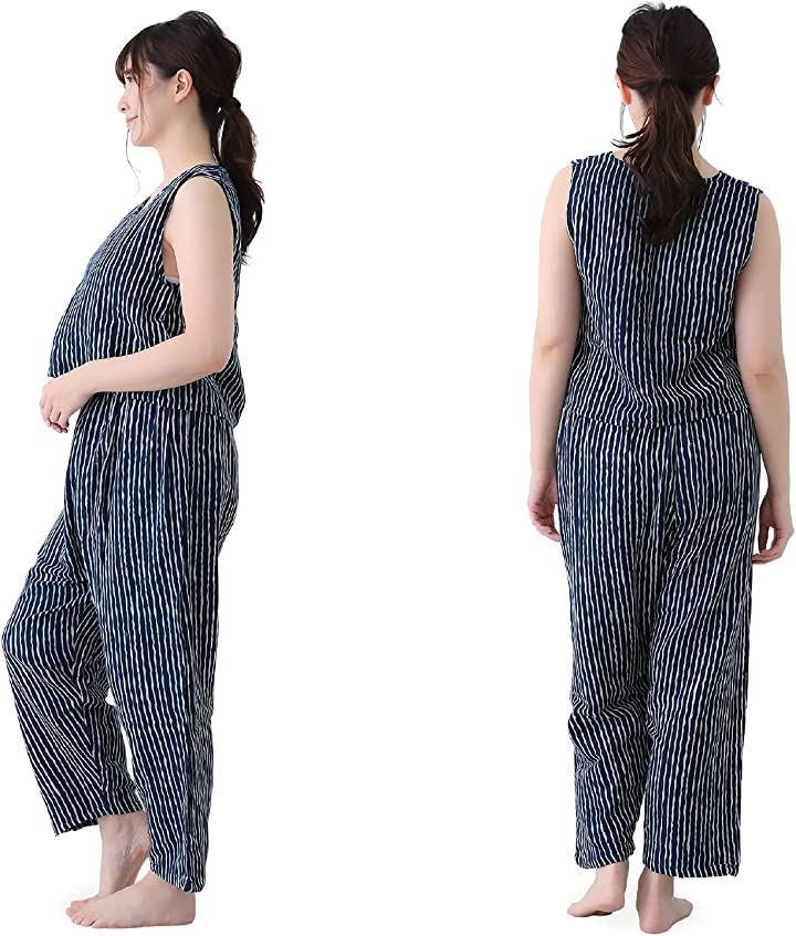 「サイズ」ゆったりLサイズ ・トップス:着丈 約48cm、バスト幅 約49cm ・パンツ:ウエスト69cm~77cm、丈 約93cm、股下 約62cm、ヒップ最大幅 約71cm、足口幅 約20.5cm *素材の特性上、お洗濯により多少色落ちがございますのでご注意ください。