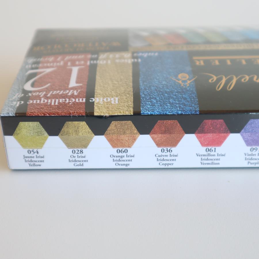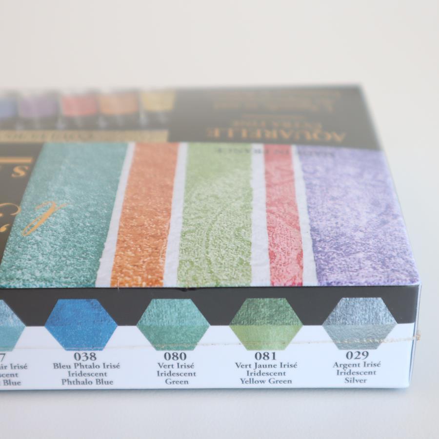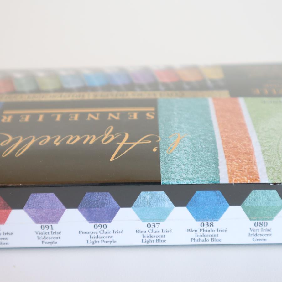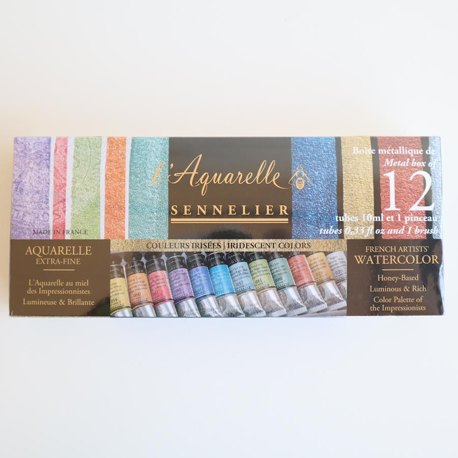 光の角度で表情が変わる、珠玉の輝きを持つプロ仕様の水彩絵具セット。蜜蜂蜜を使用したセヌリエ独自の処方により、発色の透明感と絵具の伸びが抜群。イリデッセントカラー12色は、作品に上品なきらめきと深みを加え、重ね塗りでも濁りにくいのが特長です。水彩画を極めたい方、他とは違う表現を追求するアーティストにおすすめの逸品です。
