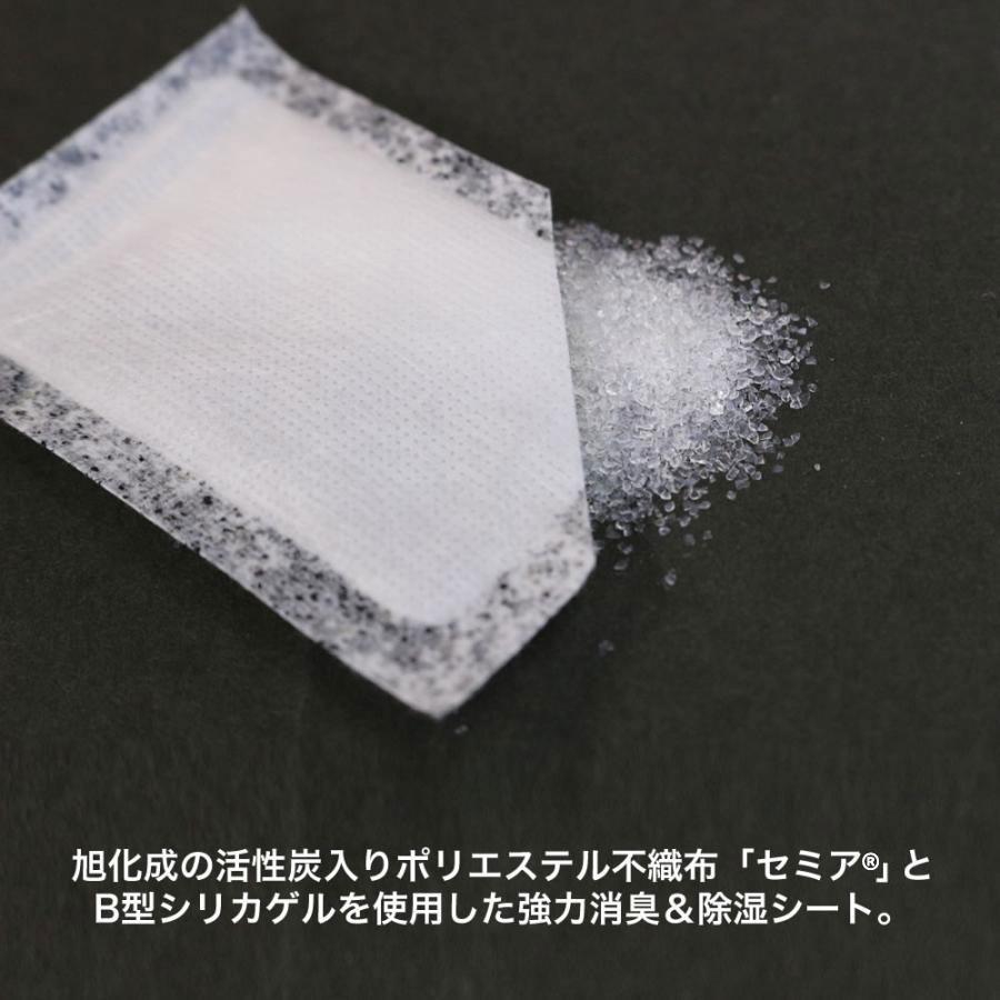 【材質】活性炭入りポリエステル不織布(旭化成「セミア® 」)、B型シリカゲル、ポリプロピレン不織布