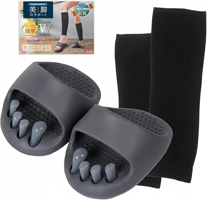 美脚サポート設計: ダイエットスリッパと着圧ソックスのWサポートで効果的な脚のケアを実現。