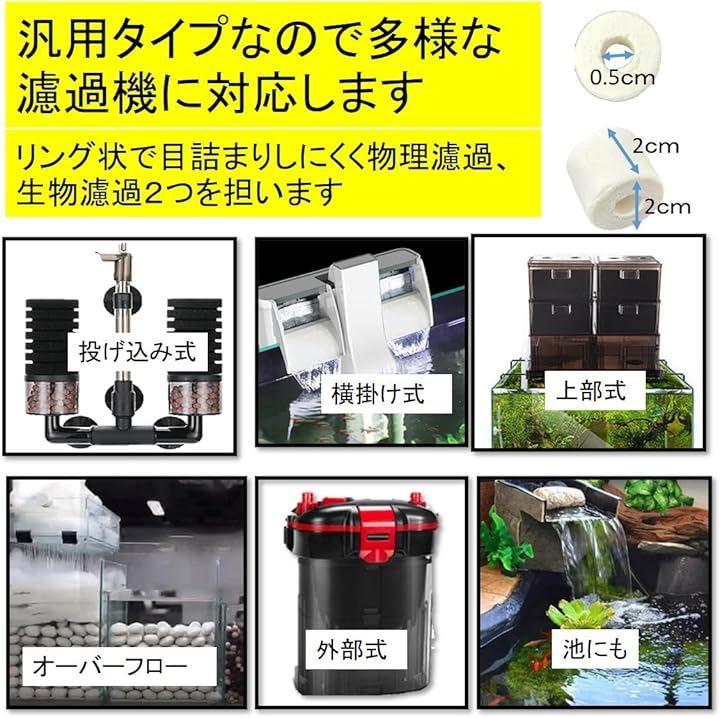 「目詰まりしにくいリング形状&物理・生物ろ過の両立」 水流を妨げないリング状デザインを採用。