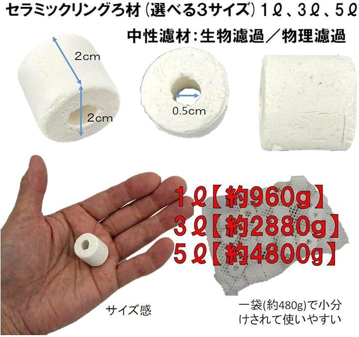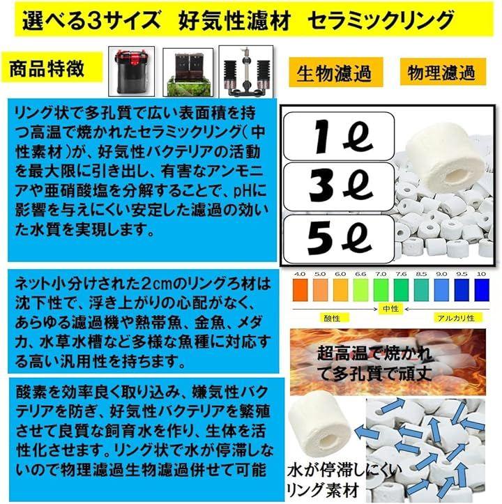 「選べる1L 3L 5L」セラミックリング 多孔質 濾過材 ネット入り販売。セラミック ろ材 水槽 ネット入り リング 中性濾材 アクアリウム バクテリア 物理濾過 生物濾過 淡水 海水 水質改善 に是非。
