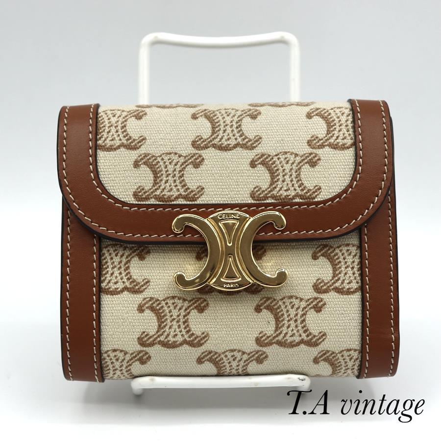 品名 トリオンフ キャンバス レザー コンパクト財布 ベージュ