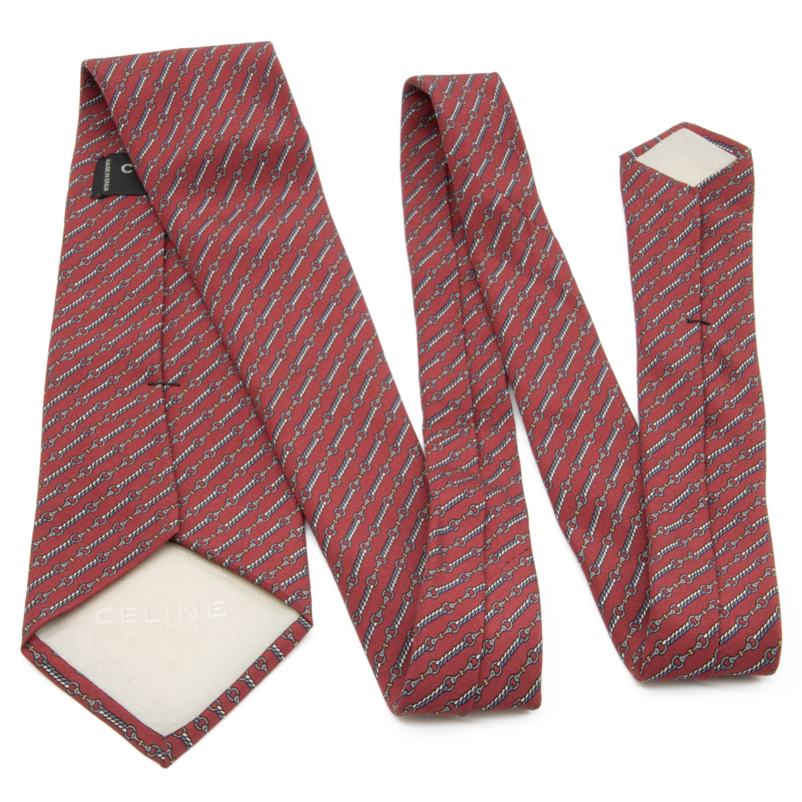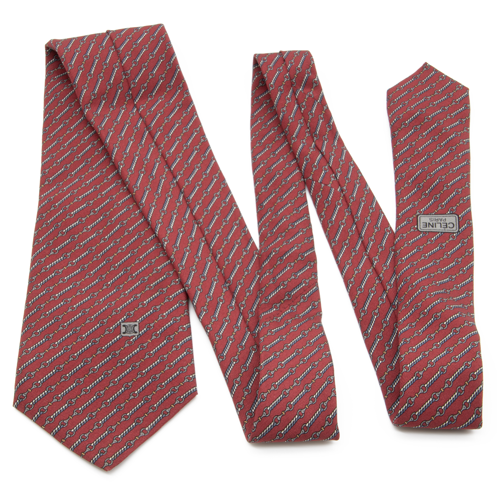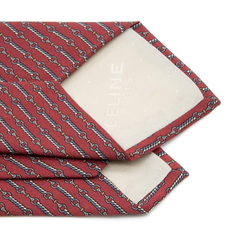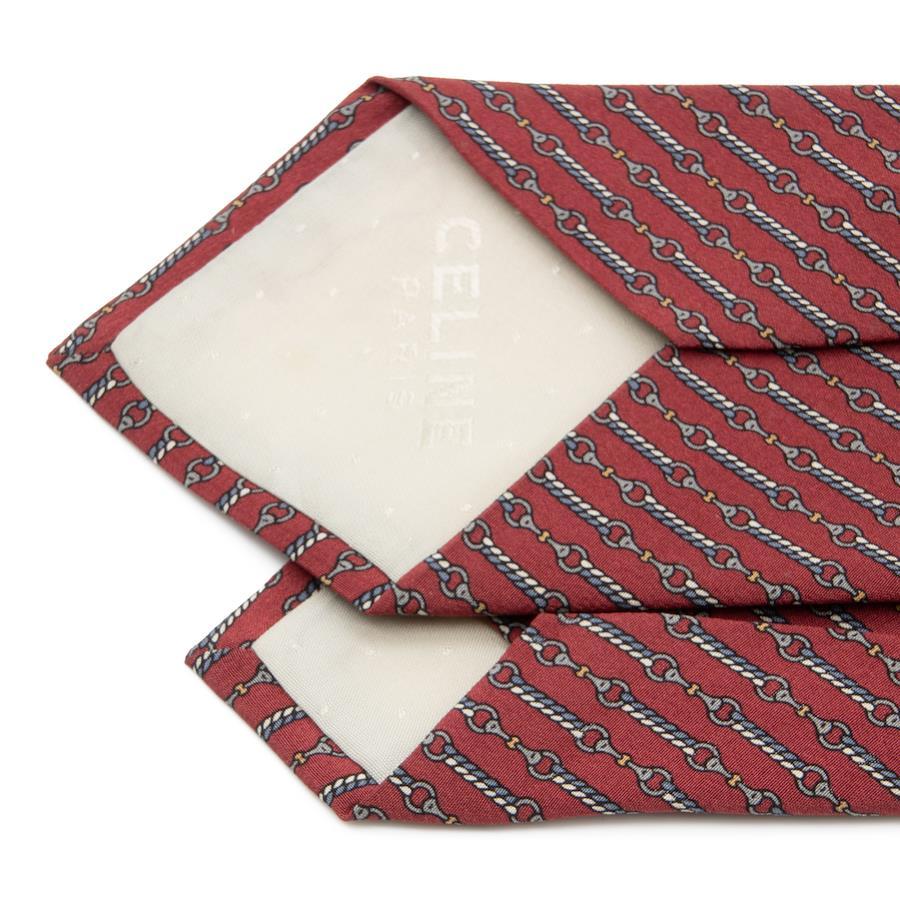 落ち着いたレッドの地に、セリーヌを代表するホースビットと鎖の模様がストライプ状にデザインされております。