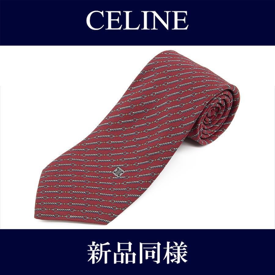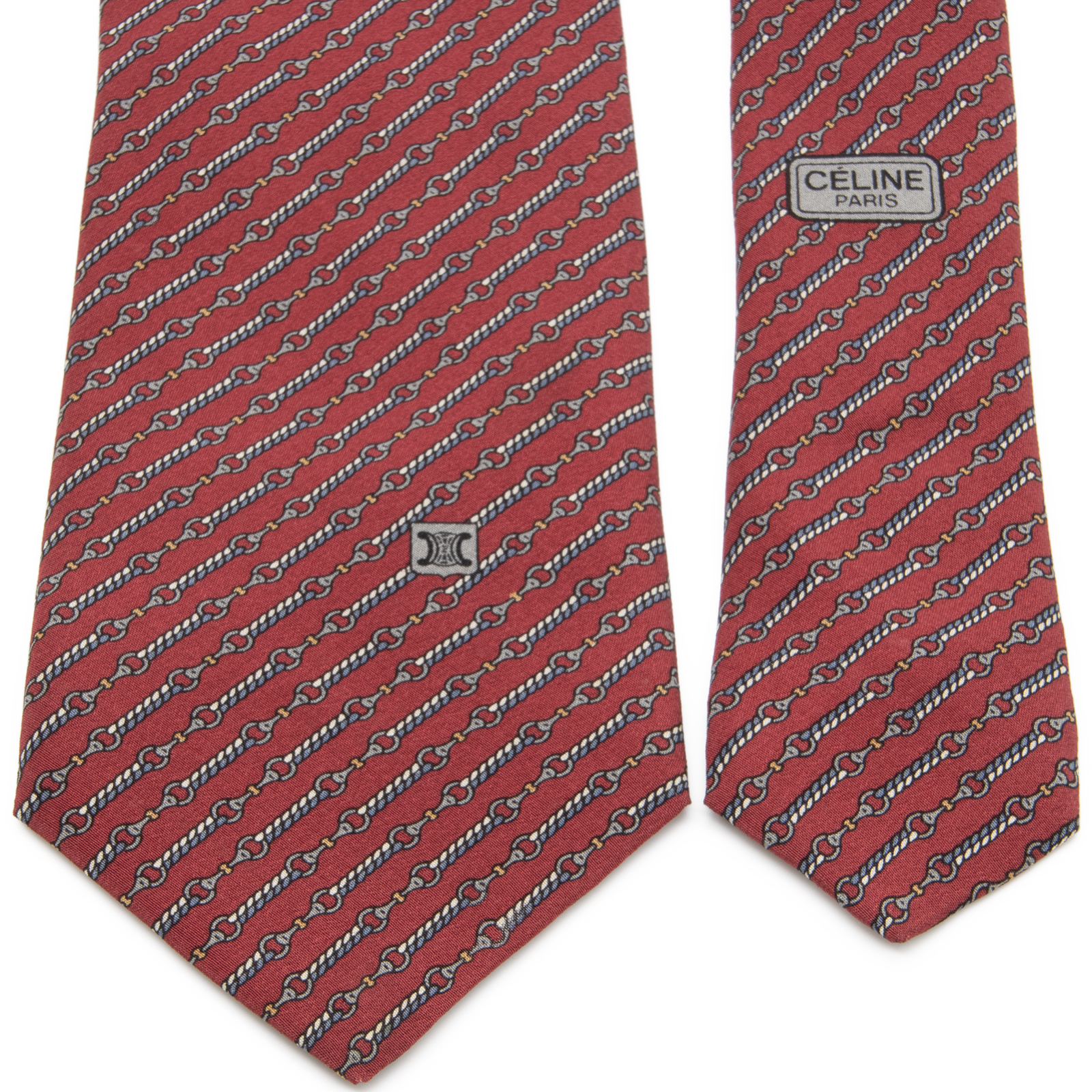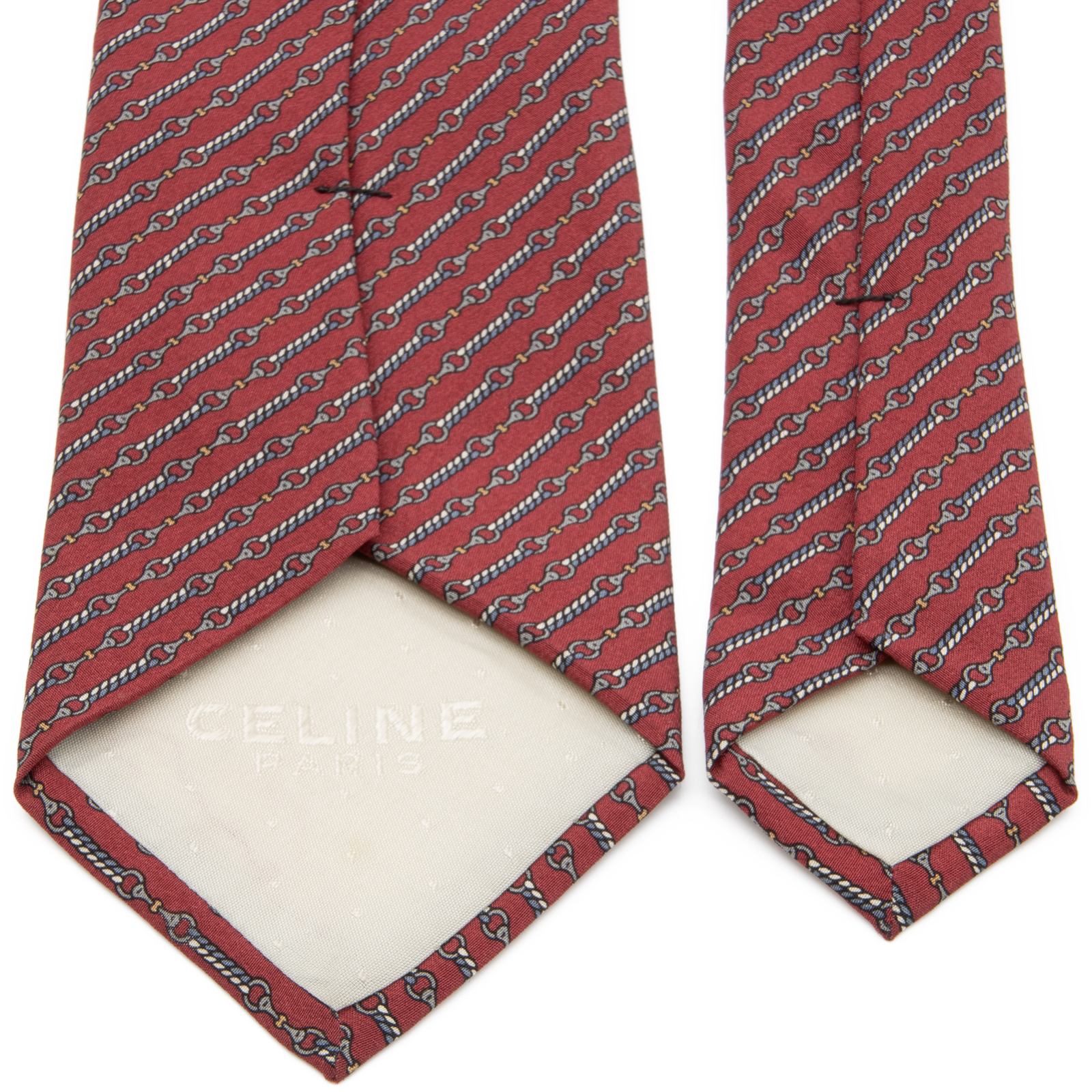落ち着いたレッドの地に、セリーヌを代表するホースビットと鎖の模様がストライプ状にデザインされております。