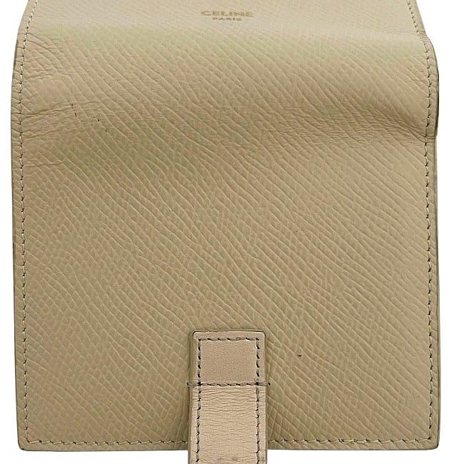 Celine Small Strap Bifold Wallet, Cream Beige, 10H263BRU.03LW, Excellent Condition, Leather, Pre-Owned, S-FG-4280, Flap and Hook Closure, Grained Leather, Simple Design, Unisex