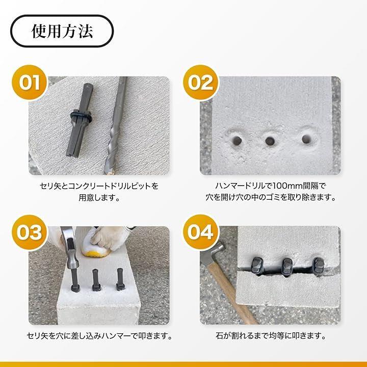 ・セリ矢はハンマードリルやコンクリートドリルなしに効率的にコンクリート割りや石材を砕石できる便利な石割り道具です。