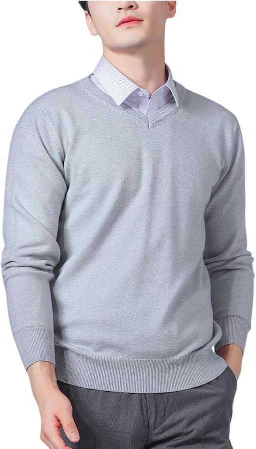 上品でシンプルなデザインのVネックセーターは、ビジネスからカジュアルまで幅広く活躍するトップスです。