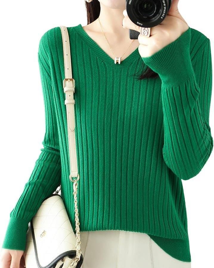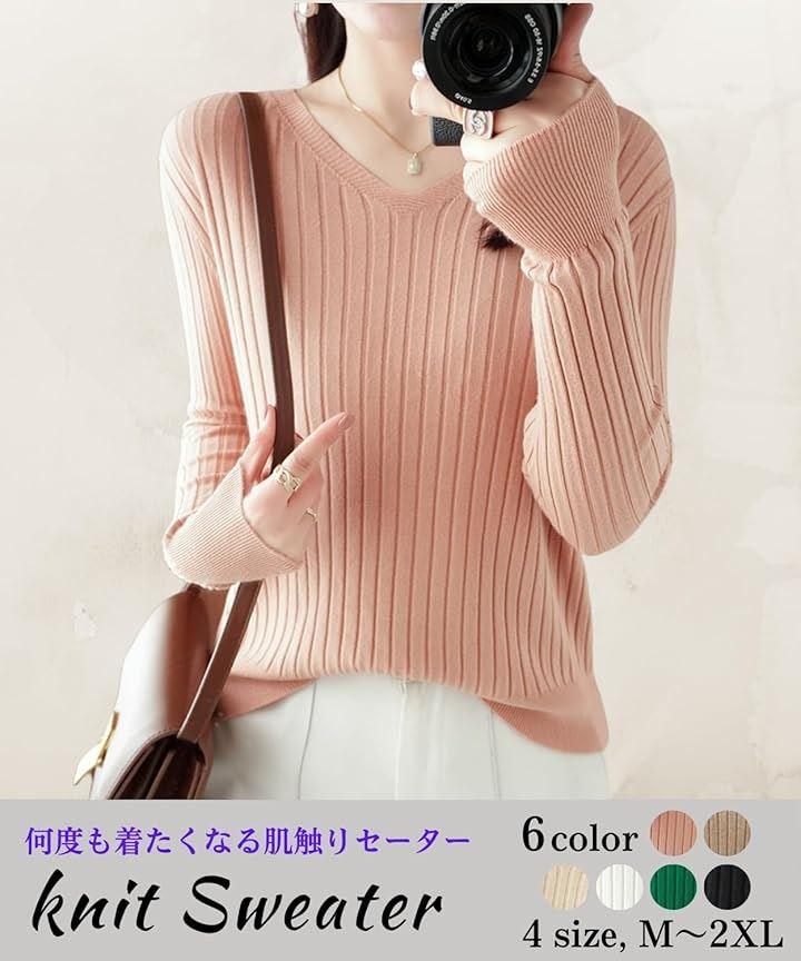 「何度も着たくなる肌触り」◉秋・冬に欠かせないレディースの長袖 Vネックセーターです。
