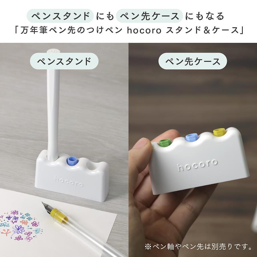 ペンスタンド にも ペン先ケース にもなる「万年筆ペン先のつけペン hocoro スタンド&ケース」<br> 収納したペン先にペン軸を挿すと、ペン先ごと抜くことができ、そのままスムーズに筆記できます。