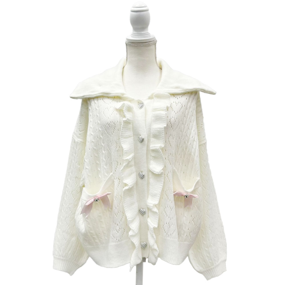甘かわいいハートケーブルがポイントのセーラー襟カーディガンのご紹介