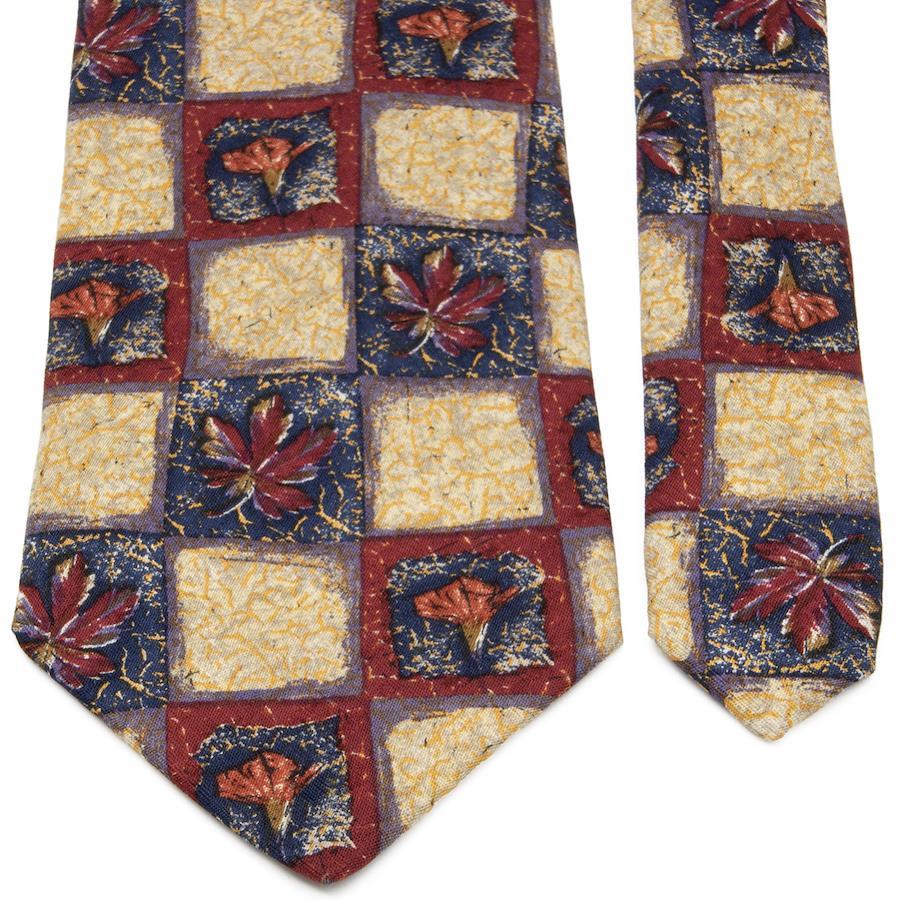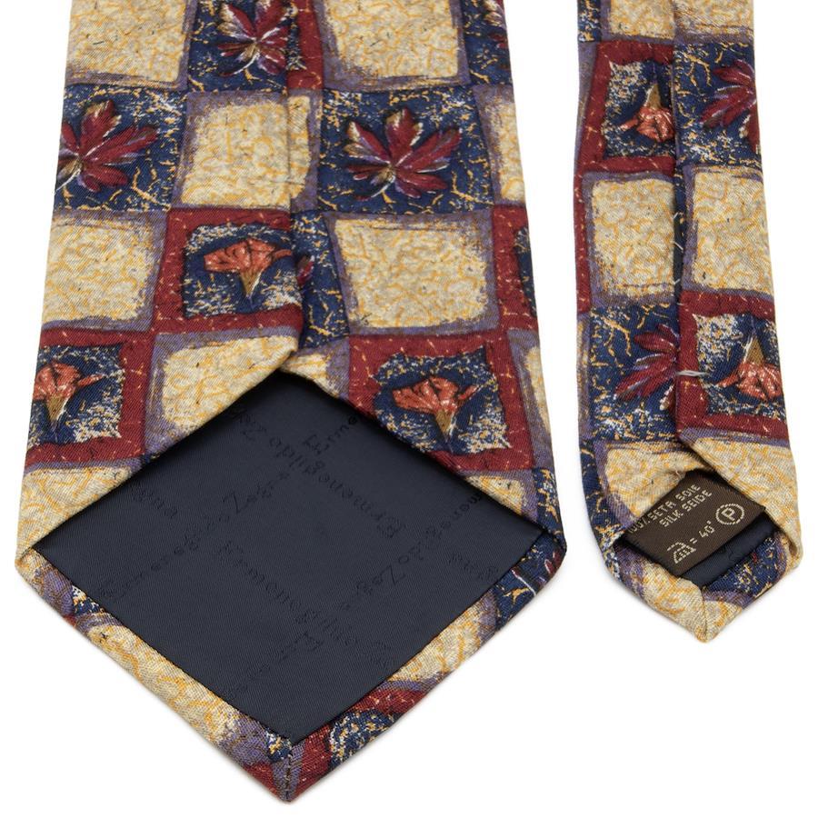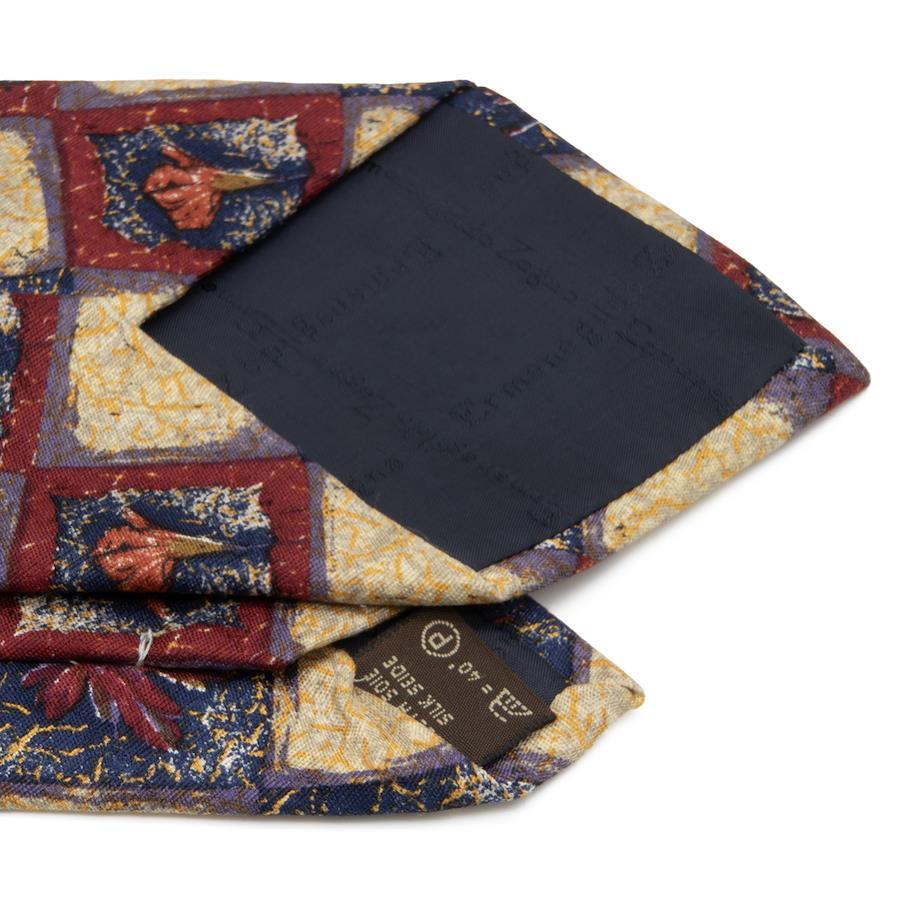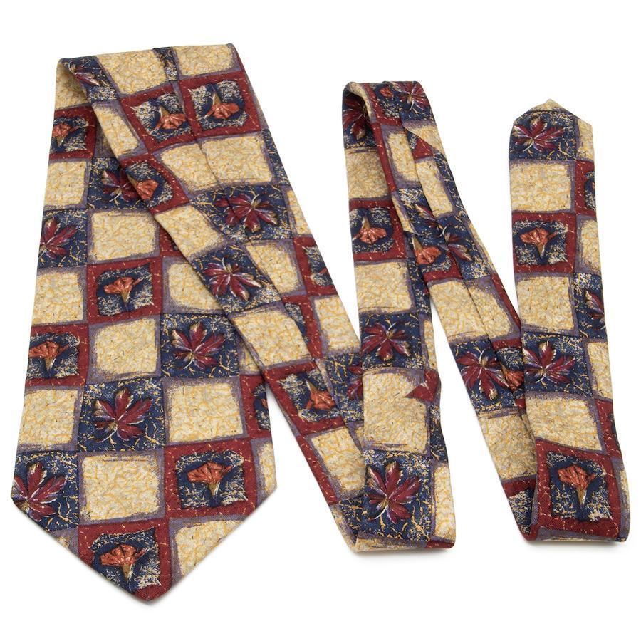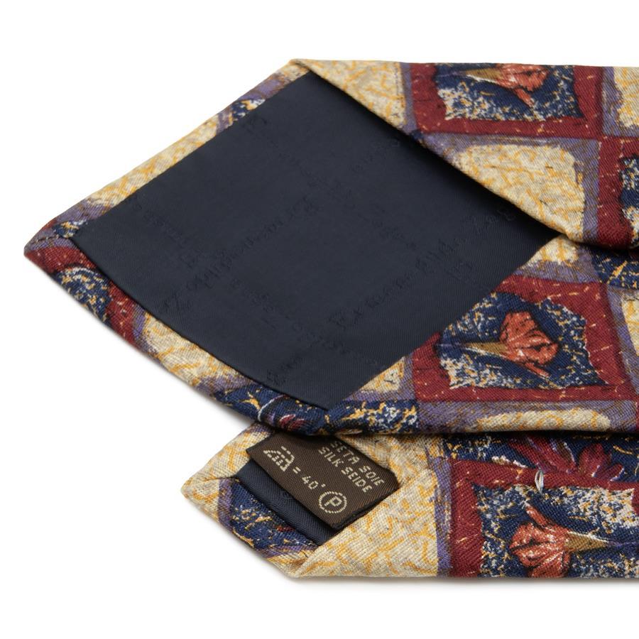 こちらのネクタイは、イエローをベースにワインレッドの華やかな花々が咲き誇るオールオーバー柄で、お客様の個性をさりげなく表現いたします。