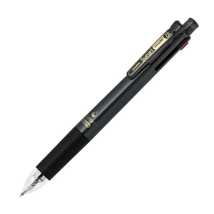 エマルジョンインク搭載の多機能ボールペン。濃く書ける。なめらか筆感。ボール径0.5mmエマルジョンインク(黒・赤・青・緑)+シャープ0.5mm挟みやすいバインダークリップ搭載。替芯:EK-0.5芯シャープは後部ノック式。便利な消しゴム付。ペン先端はインクで汚れにくいようにグラスカット加工。公式文書対応。(黒・赤・青インクのみ)