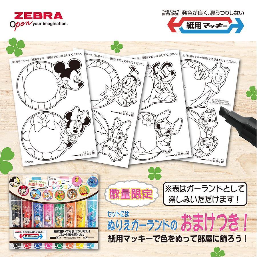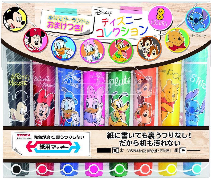 多色セットには、ディズニーコラボだからできるかわいいおまけが付いてくる! 親子でもっと楽しめる「ぬりえガーランド付き」!