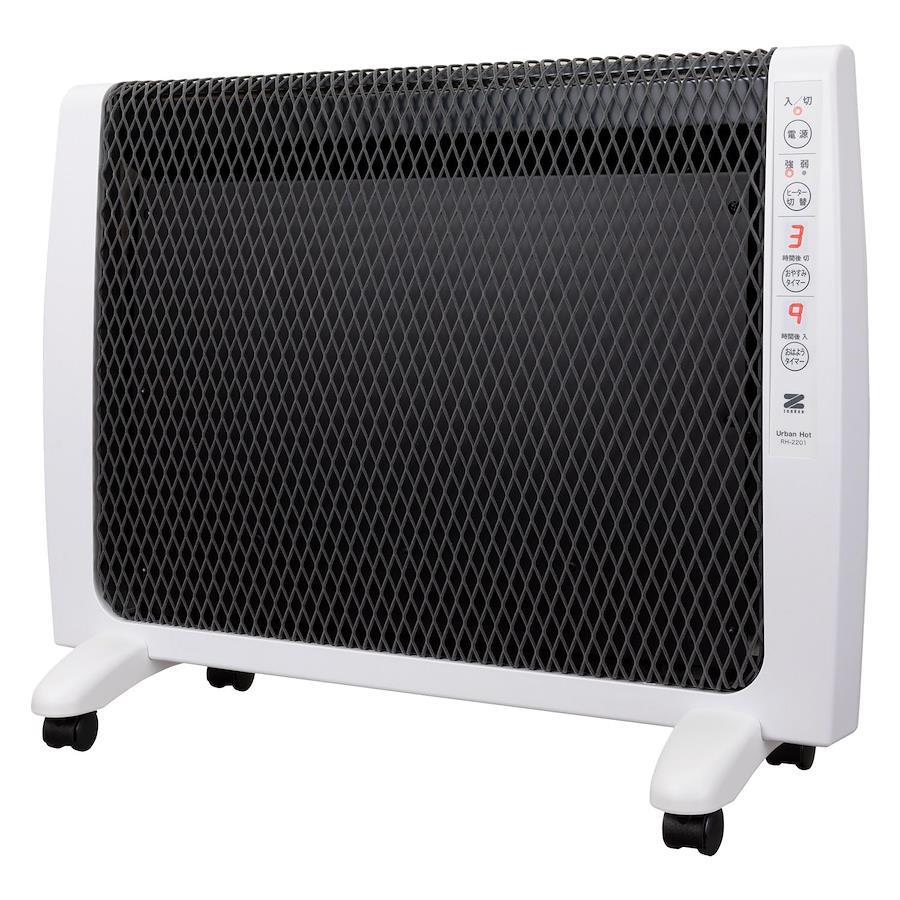 ゼンケン 遠赤外線暖房機「アーバンホット」RH-2201 W暖房方式 タイマー付き 転倒時安全装置 薄型ブランド ゼンケン特徴 タイマー色 Whiteフォームファクタ キャビネット屋内/屋外使用 インドアサイズ幅650×高さ510×奥行250(本体70)?o・重量約7.5kg・定格消費電力1,000W/500W・材質本体:ABS樹脂・前面パネル:鋼板(ナイロン植毛)・後面パネル:鋼板・スタンド:ABS樹脂・タイマーON/3~9時間(1時間単位) OFF/1~4時間(1時間単位)