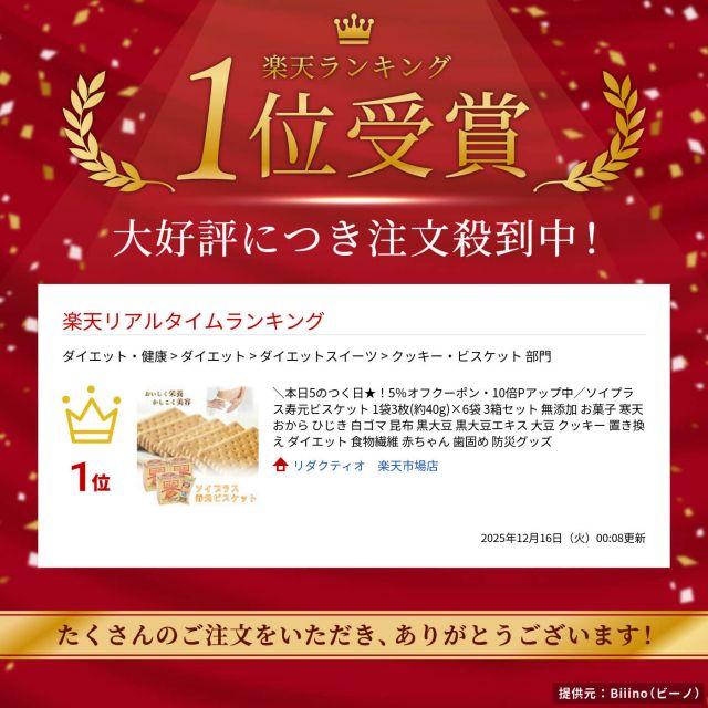 成分表示小麦粉(小麦(国産))、パーム油(コロンビア産有機食用)、黒糖(コスタリカ産有機)、白ごま(パラグアイ産)、発芽黒大豆抽出エキス(国産)、昆布(国産)、食塩(国産)、おから(大豆(国産))、寒天(国内製造)、ひじき(国産)/重曹