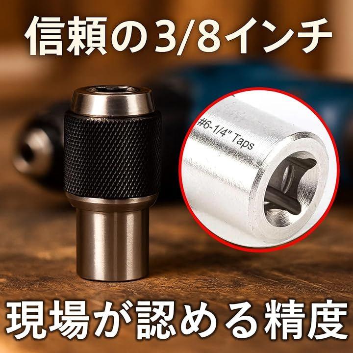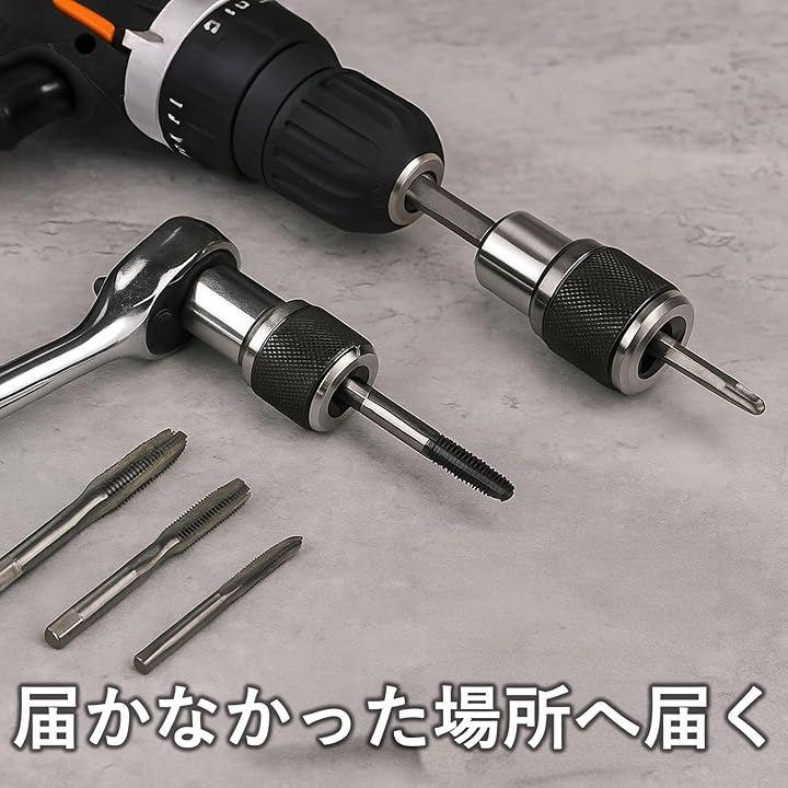 3/8インチスクエアドライブですので、電動ドリルやラチェットレンチなど、汎用性が高く、さまざまな工具に接続することが可能です。