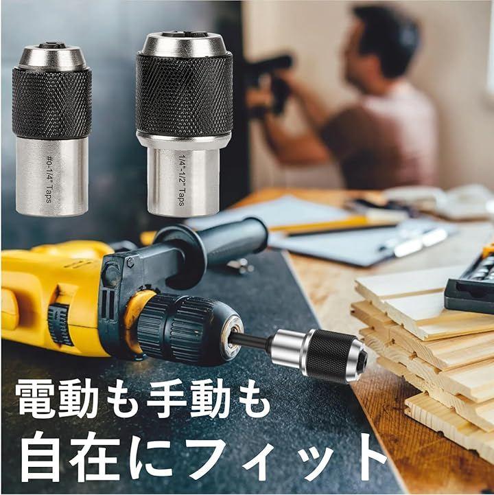 1つで複数サイズのタップに対応できる#6-1/4インチ(小)と1/4-1/2インチ(大)の2個セットにてご用意しております。